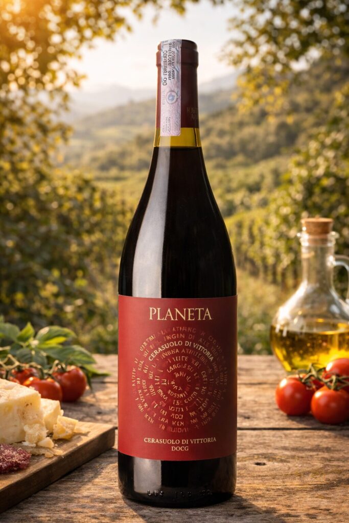 Con la sua gradazione alcolica di 12,5% vol. e il suo profilo fresco e versatile, il Cerasuolo di Vittoria Planeta si presta a numerosi abbinamenti gastronomici. Eccellente con primi piatti della tradizione siciliana, paste con ragΓΉ leggeri, pesce alla griglia come il tonno rosso, carni bianche e formaggi freschi. La sua temperatura di servizio ideale Γ¨ di 16-18Β°C, leggermente al di sotto di quella dei grandi rossi strutturati, per esaltarne la freschezza e la fragranza aromatica.
