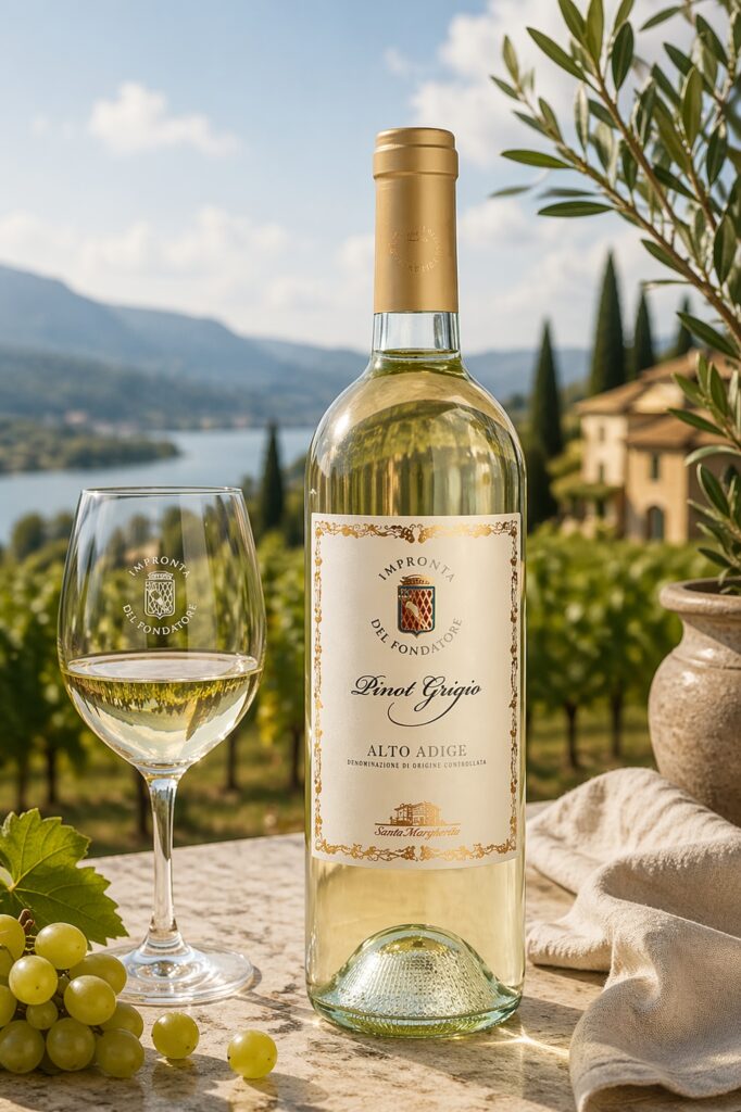 Il Pinot Grigio Alto Adige Santa Margherita è un vino bianco che ha fatto la storia dell’enologia italiana nel mondo. Santa Margherita è stata la cantina che negli anni ’60 ha rivoluzionato l’approccio al Pinot Grigio, vinificandolo in bianco anziché in ramato come da tradizione, creando uno stile fresco ed elegante che ha conquistato i mercati internazionali. Questo Pinot Grigio Alto Adige DOC nasce nei vigneti d’alta quota del Trentino-Alto Adige, dove le montagne e il clima alpino conferiscono alle uve una freschezza e un’intensità aromatica ineguagliabili.