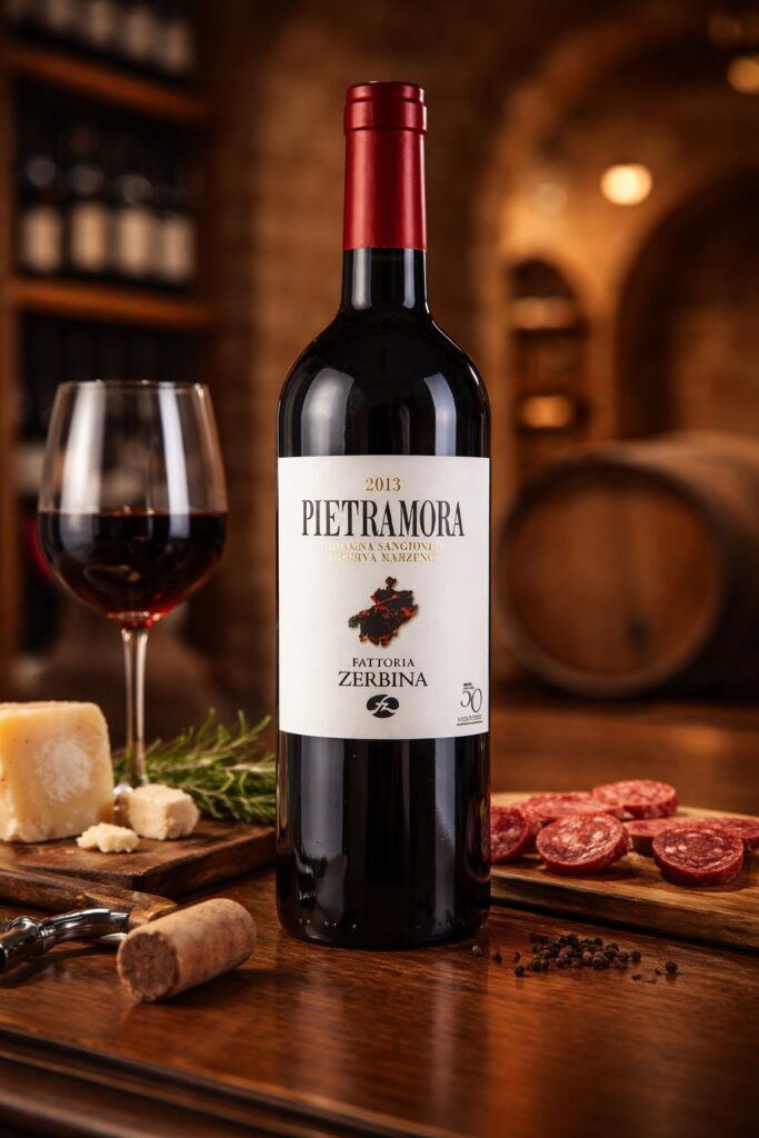 Il nome Pietramora deriva dal borgo medievale omonimo nelle colline faentine, dove si trovano i vigneti di Fattoria Zerbina. Cristina Geminiani, alla guida dell’azienda, ha dedicato la sua carriera a dimostrare che il Sangiovese di Romagna merita un posto di primo piano nell’olimpo dei grandi rossi italiani. Il Pietramora รจ la prova piรน convincente di questa missione: un vino che unisce la tipicitร del Sangiovese romagnolo โ piรน morbido e rotondo rispetto a quello toscano โ a una complessitร e una profonditร che lo rendono un riferimento per tutta la denominazione.